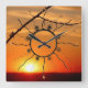 A wrought iron style, mystical sun God design feature clock, where the sun sets on another gorgeous day.