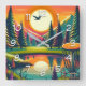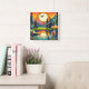 Reloj Cuadrado Sunset y árboles de golf de disco retro