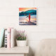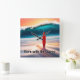 Reloj Cuadrado Surfboard vertical en arena con ola