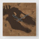 Los huesos de dinosaurio marrón en un fondo de color gris hacen un reloj de pared super fresco para cualquier aspirante a paleontólogo. Diseño de la Menagerie de Lechuza Nocturno, 2012.