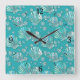 Reloj Cuadrado Teal, seafoam sea shells, turquoise background