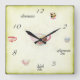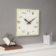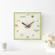 Tómese un té con un reloj que tiene teteras pintadas a mano y una tetera, además de los horarios recomendados para las elevaciones, el té de la tarde y el té alto.