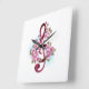 Reloj Cuadrado Tejidos musicales notas de colores con flores de S