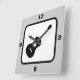 Obtén un tema musical con esta guitarra acústica en blanco y negro. Este reloj cuadrado de pared es ideal para una sala de música, un dormitorio para adolescentes o para cualquier guitarrista. Puede cambiar el fondo de color de este reloj de la plata predeterminada a cualquier otro color de la paleta de Zazzle — sólo tiene que hacer clic en el botón personalizar del naranja y luego editar el fondo para elegir otro.