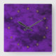Un reloj hermoso con un fondo y un oro púrpuras del terciopelo protagoniza para las horas.