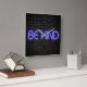 Muro de ladrillo urbano iluminado con texto BE KIND en brillantes luces de neón morado.