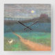 Bring the quiet magic of a midnight forest into your daily life with this unique square wall clock. This captivating Japanese Nihonga masterpiece poetically evokes the sound and feel of a deep, tranquil forest, capturing a serene and mysterious scene: a lone white cat begins a midnight journey towards a distant, ancient German castle.