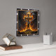 This incredibly powerful and inspiring design captures the theme of Divine Strength through unwavering faith amid adversity. The artwork features a massive, dark Cross inscribed with "THE CROSS," standing on a rough, rocky base and dramatically enveloped in brilliant, golden-orange flames and towering storm clouds, symbolizing the firm foundation of belief in times of trial. A prominent clock motif with dark hands overlays the scene, reminding the observer of the eternal nature of this strength and the enduring power of faith. The design is presented with a high-quality, durable print that creates the striking illusion of a rich, dark wood grain frame surrounding the image, though this border is entirely a visual effect printed directly onto the clock face and is not a separate frame or real wood. The image contains the powerful Bible verse, "I can do all things through Christ who strengthens me. Philippians 4:13." This piece is a powerful reminder of Christian conviction.
