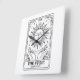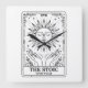 A beautiful minimalist tarot card design featuring 'The Stoic'. This artwork illustrates a serene sun with closed eyes, radiating calm energy over open meditative hands. Designed in a clean vintage line art style with Roman numerals (XVII), symbolizing balance, self-control, and inner peace. Perfect for fans of stoicism, tarot aesthetics, and mystical minimalist art. Great for those who value mindfulness and ancient wisdom.