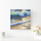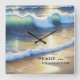Reloj de pared con un cuadro tranquilo de una ola en la playa al sol. Un diseño soñador y pacífico.