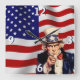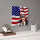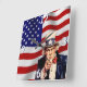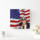 Reloj cuadrado de pared acrílico de 10.75" x 10.75" con una imagen vintage de los años 40 del Tío Sam en la bandera de Estados Unidos. Ver toda la colección de Reloj Patriótico de los años 40 en el DECOR | Sección Relojes.