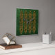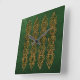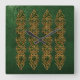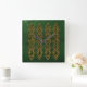 Decoración de nudos dorados celtas con hiedra sobre un fondo verde de pared.