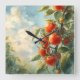 Un diseño de inspiración vintage con deliciosos tomates que crecen en una vid con un cielo celestial en el fondo.