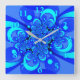 Reloj Cuadrado Tonos de arte fractal azul moderno abstracto