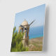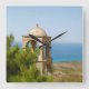 Detalle del campanario con pinos y vistas al mar en una isla mediterránea
