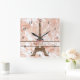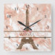 Este bonito diseño de reloj de pared de la Torre Eiffel presenta un gráfico marrón de la Torre Eiffel sobre un fondo de mármol blanco y oro rosa. ¡Personaliza con un nombre!