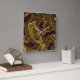 Tótem: Arte primitivo abstracto en tonos terrosos de naranja, marrón, verde y beige.