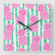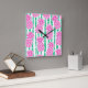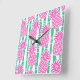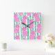 Reloj Cuadrado Trazos de bambú de piña Patrón rosa y verde