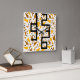 Reloj Cuadrado Triángulos marrones amarillos sobre fondo retro bl