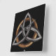 Triquetra (pronunciado /traɪkwɛ trítem/) es un sustantivo derivado del trío latino ("tres") y el quetrus ("acorralado"). Su significado original era simplemente "triángulo". Hoy en día, se ha referido exclusivamente a esta forma más complicada: formada por tres piscis vesicais, a menudo con un círculo agregado (como se ve aquí). Al igual que su predecesor: el triángulo, se usa para simbolizar el poder de las cosas y personas que son triplicadas.
