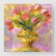 Añade un toque de elegancia y vitalidad a tu espacio con esta magnífica obra de arte floral con tulipanes rosas en un jarrón dorado. En un entorno de ensueño, de tonos pastel, el diseño es muy acogedor y bonito, perfecto para los amantes de la decoración, los regalos y la naturaleza. Ideal para el arte mural, los estuches de teléfono y los accesorios.