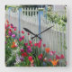 This square clock has the photo by Kristie Hubler, called "Tulips along white picket fence", and is a photograph taken in April 2012, along a side street in Cape May, New Jersey. Cape May is a seaside, beach resort town, with lots of Victorian homes, "painted ladies" as they are called, and many of the owners of these homes have beautiful gardens. The Cape May Midatlantic Arts Center or MAC takes care of a few of the homes and popular spots in town. The Spring Festival is in full swing, many festivals and fairs take place through the year. The town's many Victorian house owners take part in the Annual Christmas House Tour during December. Lots of shops, like the Washington Street Mall district, the beach shops, bed & breakfasts, restaurants, and incredible snack shops, dot the town!
