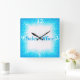 Reloj Cuadrado Turquesa en blanco, monograma - Purpurina |