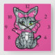 Reloj Cuadrado Un gatito kawaii con fondo rosado Purpurina