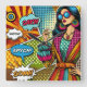 Vibrante ilustracion de arte pop retro con una elegante mujer de colores llamativos y gafas de sol de moda. Ideal para el arte en la pared, los regalos o la decoración, para darle un toque de alegría a la época.