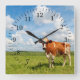 Reloj Cuadrado Una vaca curiosa en la pradera.