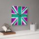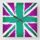 Reloj Cuadrado Union Jack Art Purple Greenl Tones Wall Art