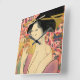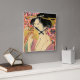 Utamaro: Kushi (Comb), aprox. 1785 Kushi (Comb). Impresión japonesa vintage muestra un retrato busto de una mujer sosteniendo un peine transparente frente a su cara. Carpintería de color de Utamaro Kitagawa, años 80.