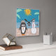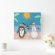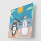 Un muñeco de nieve y un pingüino se van de vacaciones a la playa.