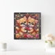 This adorable square wall clock features a heartwarming digital illustration of two fluffy ginger kittens nestled together. The kittens have large, expressive green eyes and are shown holding a small bouquet of pink roses. They are surrounded by a lush, vibrant garden of multi-colored roses in shades of red, pink, and yellow, accented by whimsical floating hearts and sparkling floral patterns. The artwork is framed by a modern black wood-textured border with bold white numeric markers for easy timekeeping. This functional piece of home decor combines high-quality whimsical art with practical utility, making it a perfect gift for cat lovers, Valentine Day, or as a charming addition to a child nursery or playroom. The rich, warm color palette and sweet character design provide a cheerful focal point for any room.