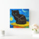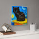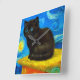 Reloj con un gato Van Gogh al estilo de la Noche Starry! Un gatito negro mullido se perfila sobre una mesa contra un cielo azul nocturno y una luna amarilla. ¡Un regalo perfecto para los amantes del gato y los coleccionistas holandeses de arte!