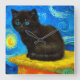 Reloj Cuadrado Van Gogh Style Starry Night Cat