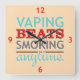 Diseño de tipografía sobre el vaping, con el lema "Vaping beats a fumador en cualquier momento" escrito en verde vibrante, rojo y gris. Un mensaje soberbio para el disfrute -y los beneficios- de dejar de fumar a través de la decisión.