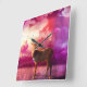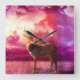 Magnífico Stag bajo el sol rosa de la mañana y nubes en este funda