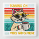 Reloj Cuadrado Vibes de gato para café retro - Funny Caffeine Lov