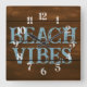 Reloj Cuadrado Vibes de playa en tablas de madera oscura