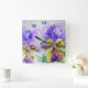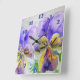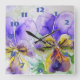Reloj Cuadrado Violeta Pansies Moradas Acuarela Flor de Pensamien