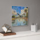 Pintura de arte de una hermosa naturaleza tropical diseñada con marcas de hora y minuto en cualquier Clocks de pared de Zazzle. Vista del puente peatonal desde el lago Nalcrest en Florida. Unas enormes nubes sobre el lago. Palmeras y bandera estadounidense. Tranquilidad y tranquilidad. Pintar, Arte, Reloj, Naturaleza Tropical, Escena, Lago, Agua, Nubes, Zazzle, Zazzle, Palmas, Bandera, Paisaje, Puente.
