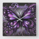 Reloj Cuadrado Whimsical Gothic Butterfly Purple Personalized