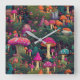 Reloj Cuadrado Whimsical Mushrooms Wall Clock
