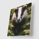 Add a touch of the British countryside to your home with a striking high definition badger wall clock featuring a crystal clear 8K close-up portrait of a noble European badger peeing through lush Woodland leaves. The square clock is both a functional timepiece and a stunning piece of wildlife art with its bold black and white markings and detailed fur. It makes a perfect statement piece for a kitchen hallway or home office.