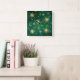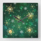 Reloj Cuadrado Xmas copos de nieve dorados sobre fondo verde