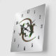 Reloj Cuadrado Yin Yang Lizards Silver Black Numbers