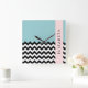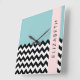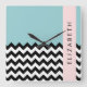 Reloj Cuadrado Zigzag negro y blanco, chevron, azul, tu nombre