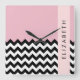 Reloj Cuadrado Zigzag negro y blanco, chevron, rosado, tu nombre