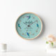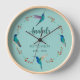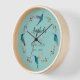 Cute customizable wall clock featuring hand-painted Mexican Violetear hummingbirds and botanical branches on a blue background. The font size and font style can be changed by clicking on "Edit design". All hummingbird images are taken from original watercolors by C. Dobbins.